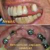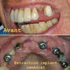On extrait des dents restantes, on conserve les implants existants, pose de 3 implants et mise en charge à 4 jours.